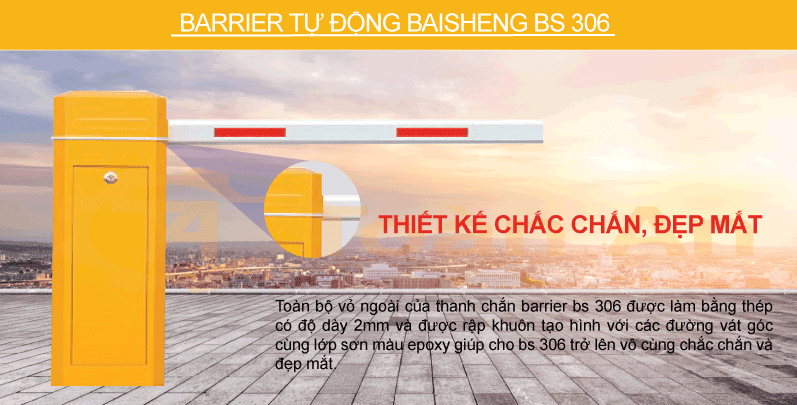 Barrier tự động Baisheng BS-306 có kiểu dáng trẻ trung và nổi bật, kèm theo tính năng dễ lắp đặt, vận hành và dể dàng tích hợp với các thiết bị khác. Vì vậy loại cổng điện này đã và đang được lắp đặt rất nhiều tại cổng cơ quan xí nghiệp, sân bay, bãi giữ xe, trạm thu phí,