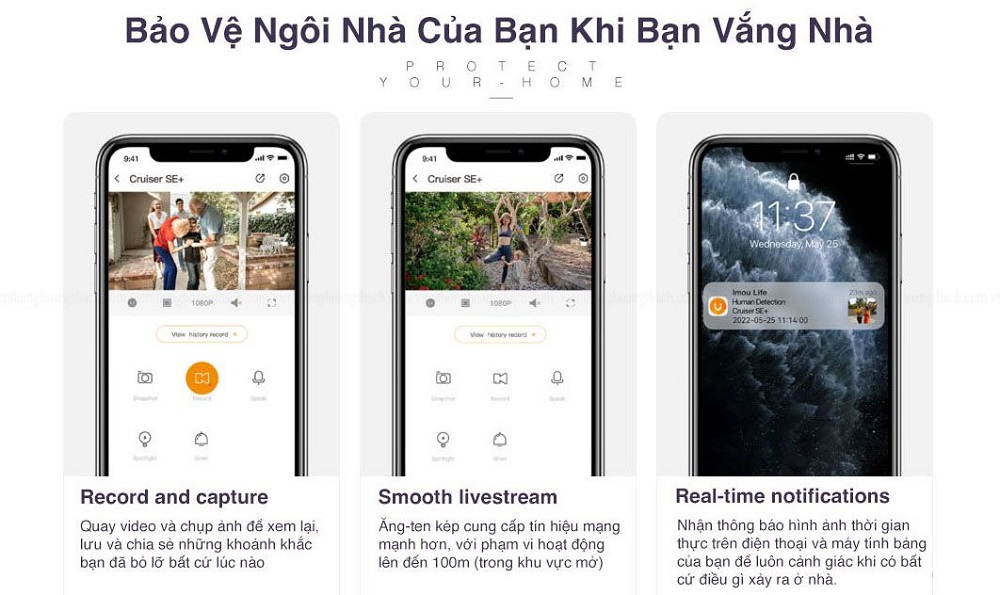 - Cảnh báo chủ động: bật đèn khi phát hiện có đối tượng xâm nhập.