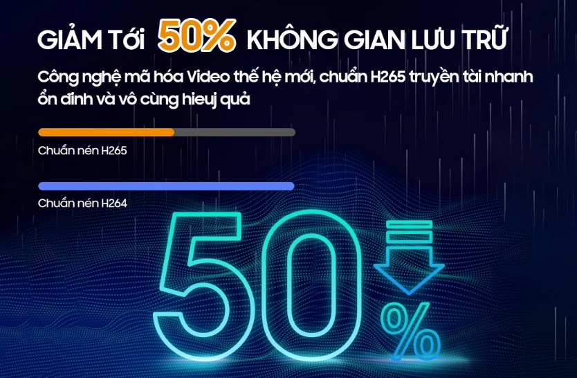Với chuẩn nén Video thế hệ mới, truyền tải mượt mà luồng Video và Audio chất lượng cao, đồng thời tiêu tốn chỉ một nửa băng thông và không gian lưu trữ.