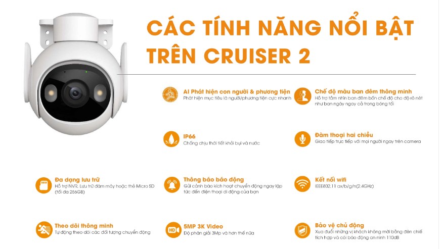 THÔNG SỐ KỸ THUẬT Camera Cruiser 2 IPC GS7EP - Camera Wifi PTZ Full Color 5.0MP