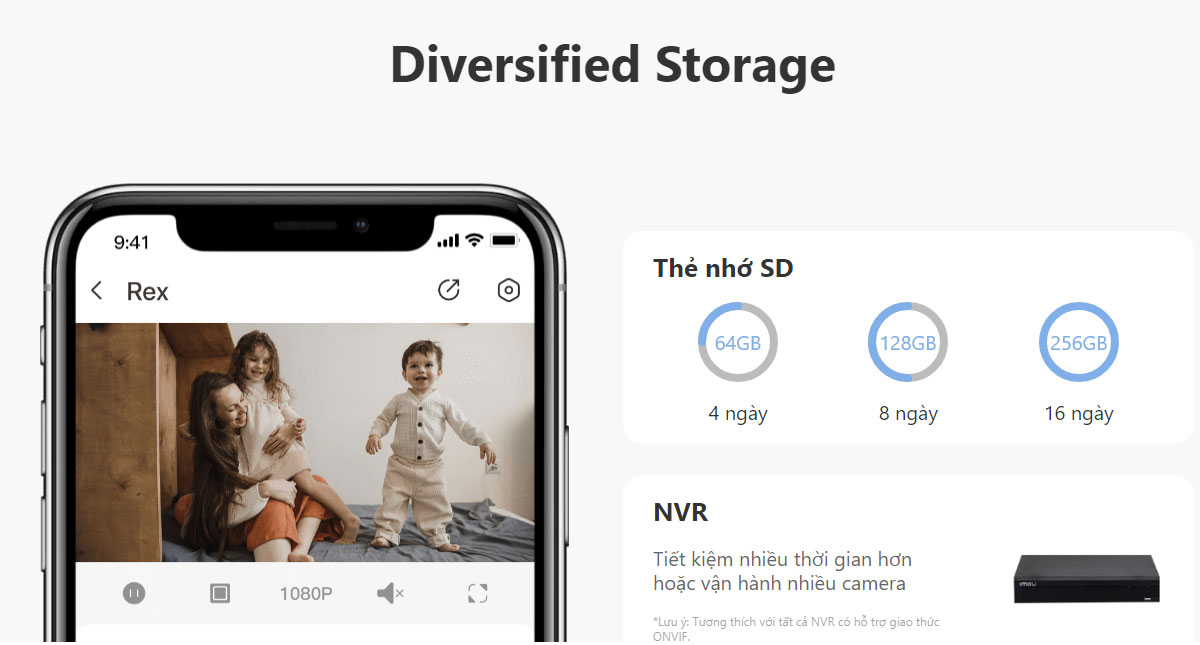 Về khả năng lưu trữ video, Imou Rex 5MP cũng rất đa dạng, được tích hợp khe cắm thẻ nhớ microSD, hỗ trợ thẻ nhớ ngoài có dung lượng lên đến 256GB, hỗ trợ video H.265 cao cấp.