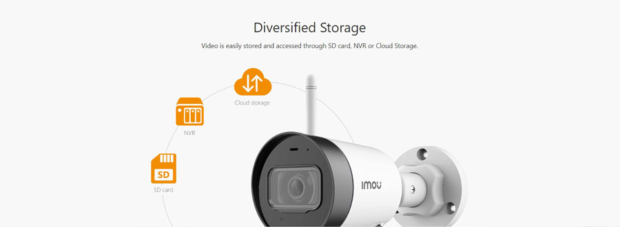 Video được lưu trữ và truy cập dễ dàng thông qua thẻ SD, NVR hoặc Cloud Storage.