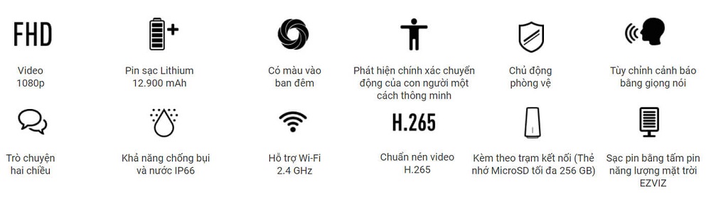 Thông số kỹ thuật Bộ Camera WiFi Dùng Pin Ngoài Trời EZVIZ BC1-B1 2K+