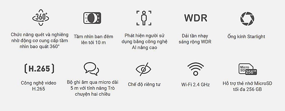 - Phát hiện hình dáng người, cảnh báo chuyển động