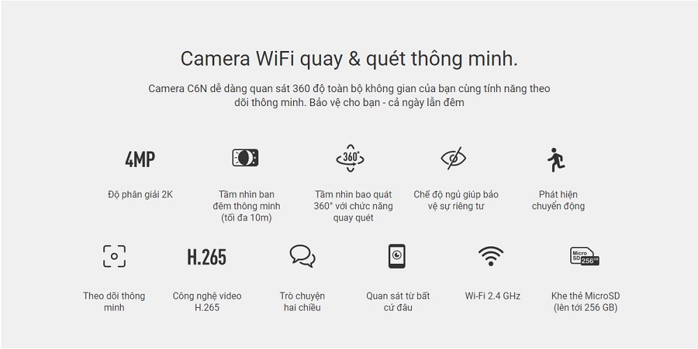 - Tính năng của camera wifi không dây EZVIZ C6N 4Mp 2K