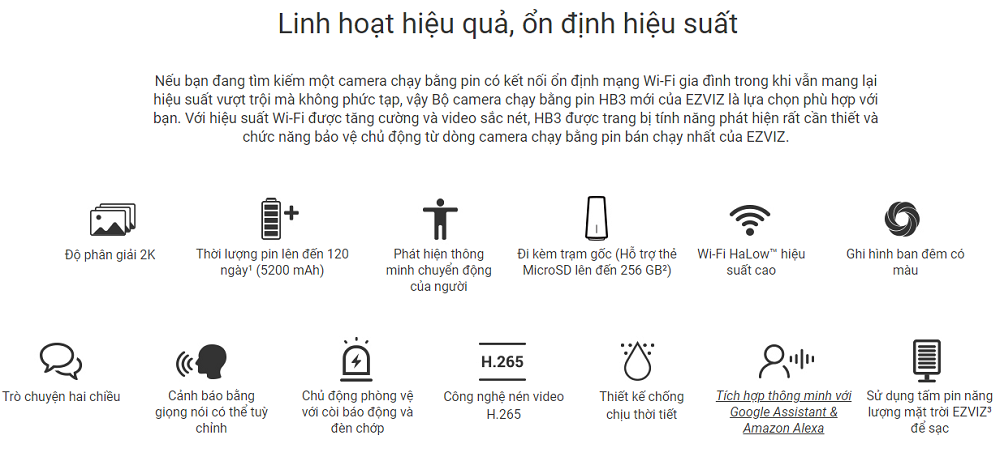 Đặc điểm Bộ camera WiFi Dùng Pin Ngoài Trời EZVIZ HB3-B2 2K