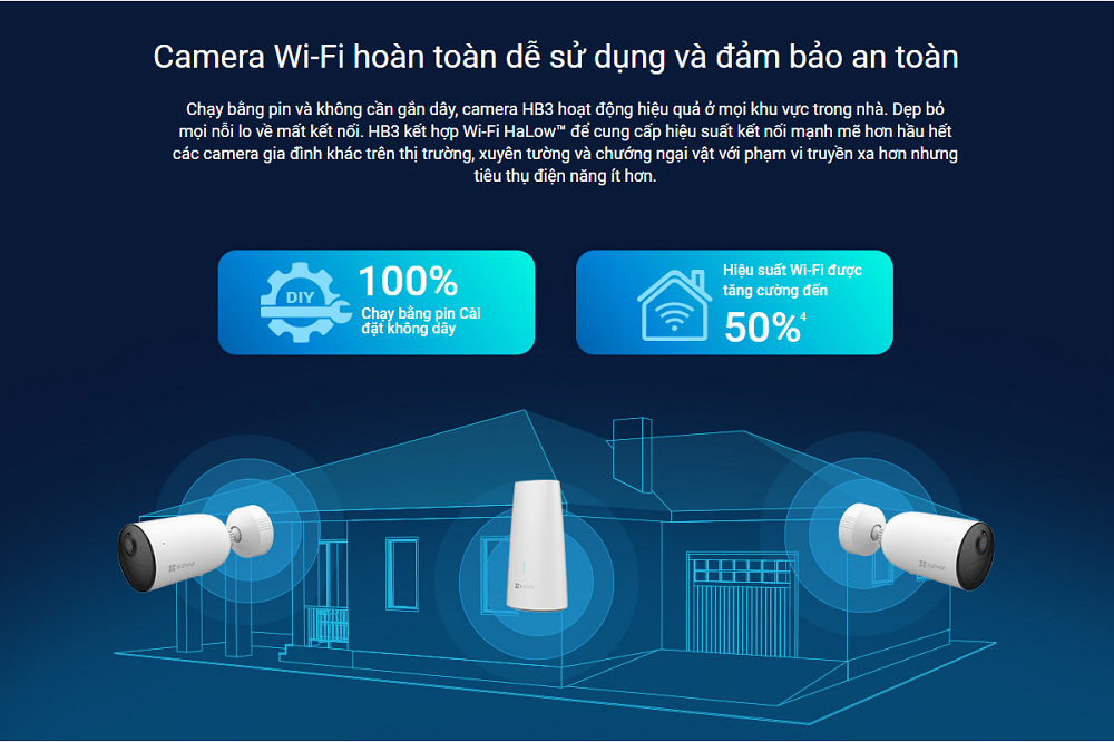 Bộ camera WiFi Dùng Pin Ngoài Trời EZVIZ HB3-B2 2K với bộ 2 camera chạy bằng Pin cho người dùng hình ảnh với độ nét cao. Được kế thừa các tính năng cần thiết từ dòng Camera pin bán chạy nhất của EZVIZ, duy trì kết nối ổn định với Wi-Fi gia đình của bạn và mở rộng hệ thống an ninh gia đình của bạn mà không cần phức tạp.