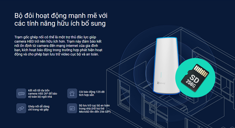 - Hỗ trợ dịch vụ lưu trữ EZVIZ CloudPlay