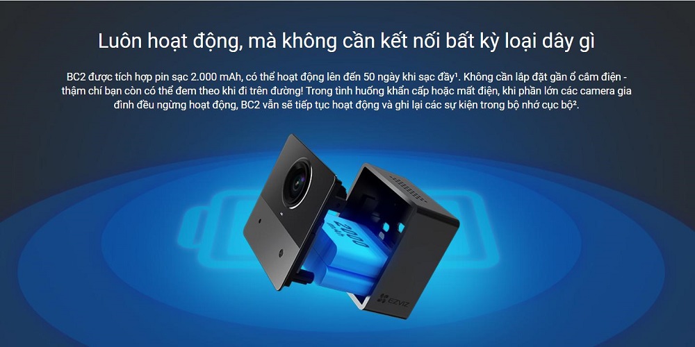 Đặc điểm Camera Wifi dùng pin sạc EZVIZ BC2 2MP