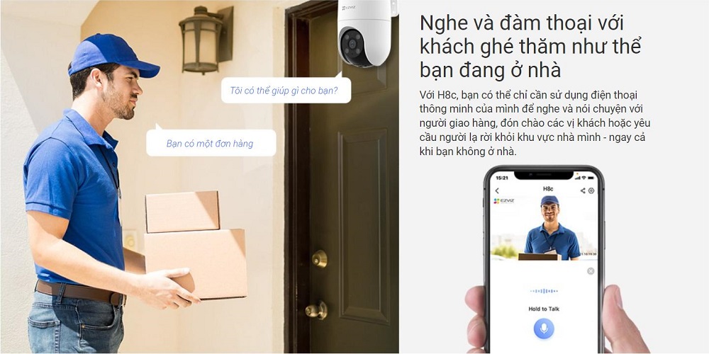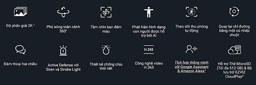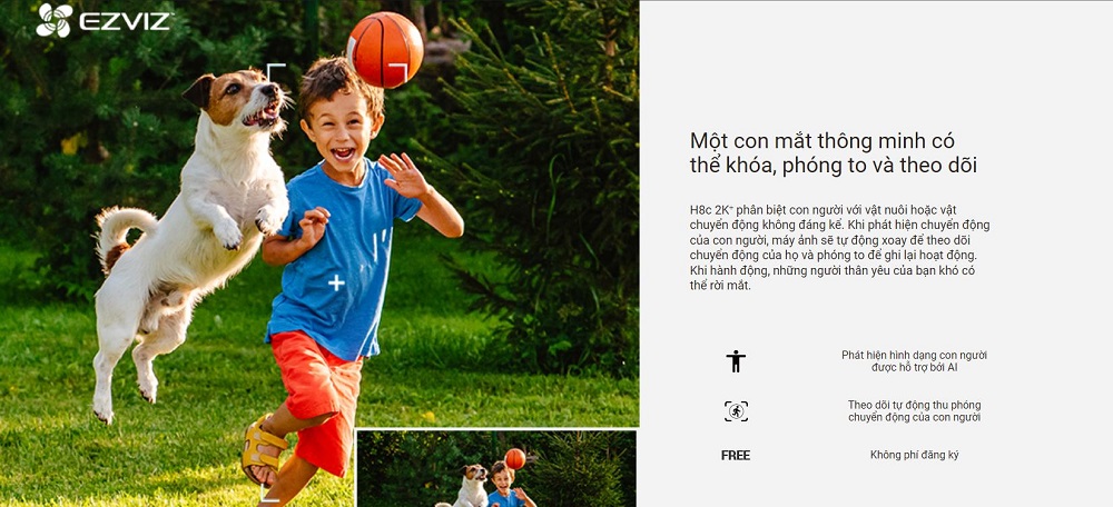- Camera Wifi Ezviz H8C 2K 3MP xoay 360 độ ngoài trời với chức năng AI nhận diện hình dạng người
