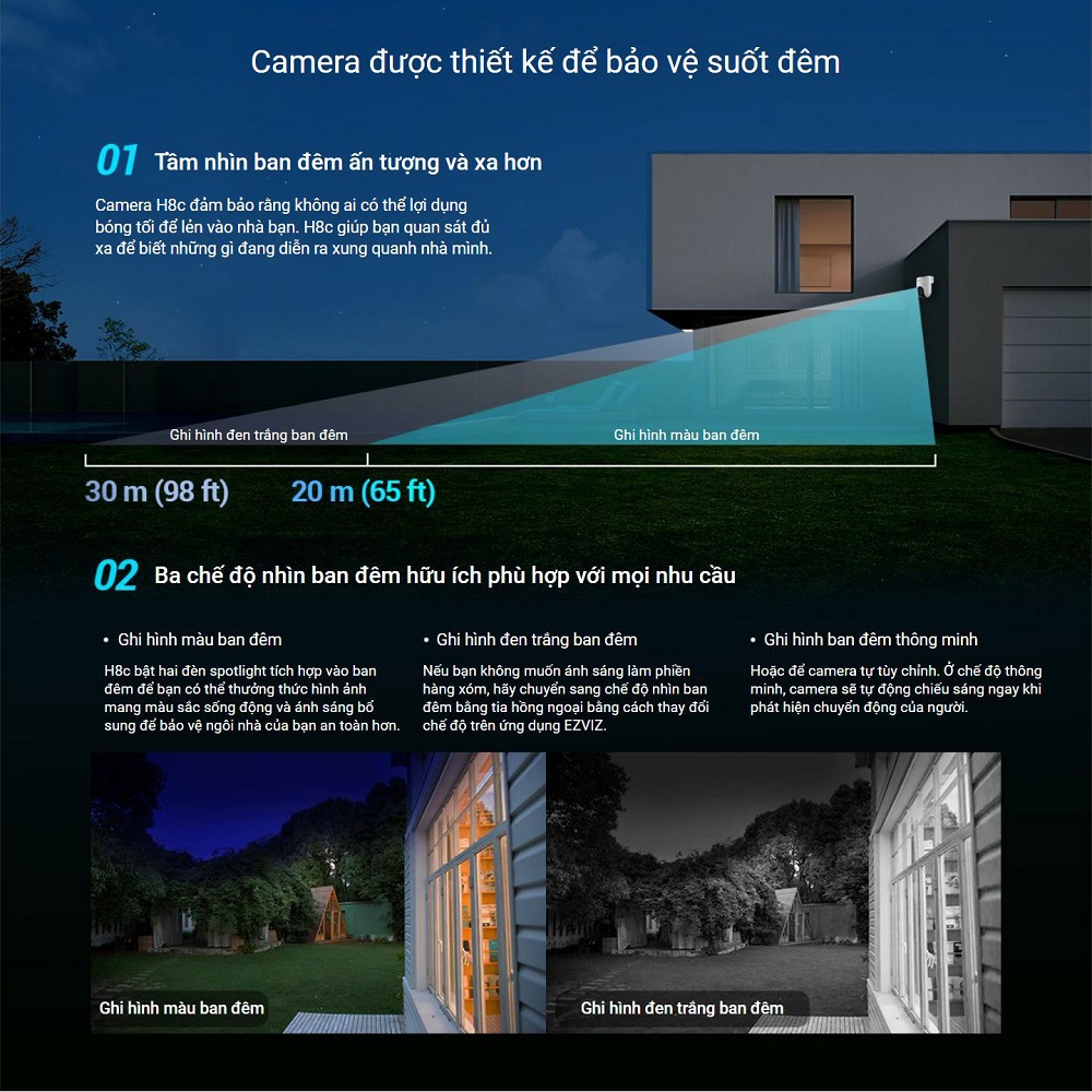 Thông số kỹ thuật Camera Wifi Ezviz H8C 2K 3MP xoay 360 độ ngoài trời