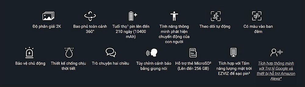 Thông số kỹ thuật Camera WiFi thông minh EZVIZ CB8 2K chạy bằng pin