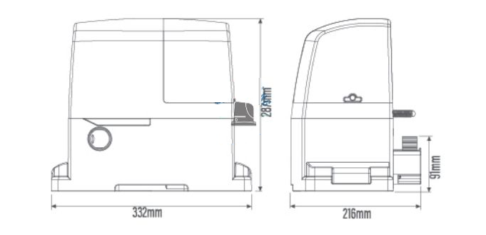 - Khóa cơ mở bằng chìa để đẩy cổng bằng tay trong trường hợp khẩn cấp; hoặc sử dụng bộ pin sạc lưu điện.
