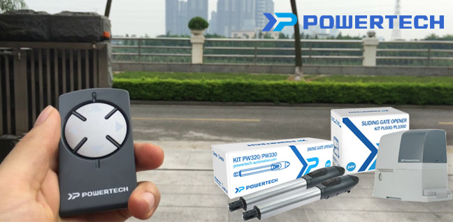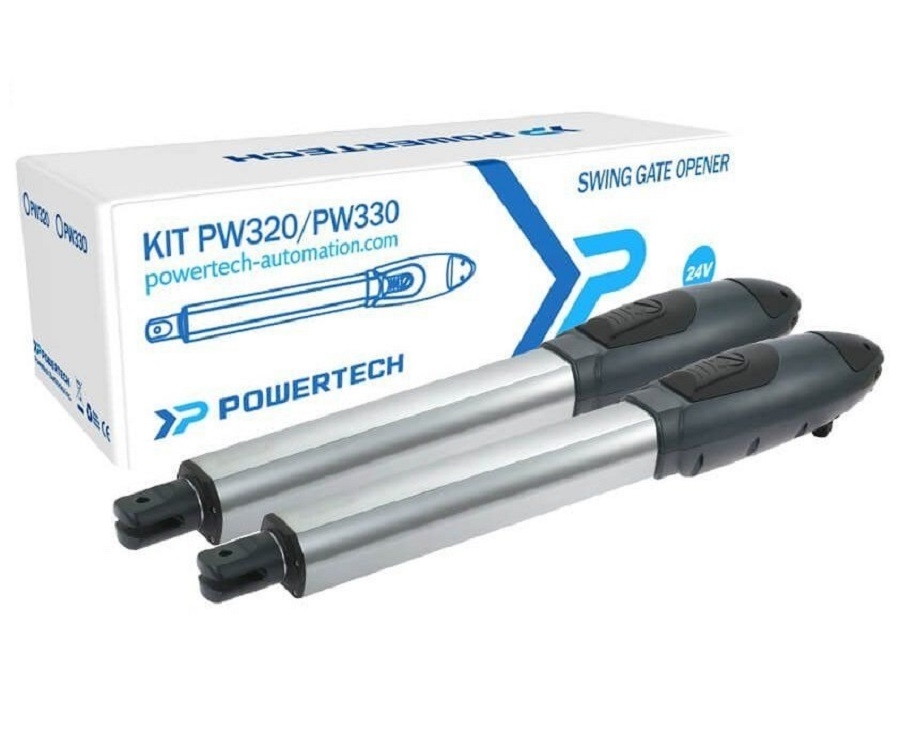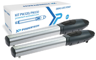 Motor tay đòn Powertech PW320. PW320 là hệ thống motor tay đòn dùng để vận hành cổng tự động đóng mở 02 hoặc 4 cánh hoạt động bằng điện DC24V thường được sử dụng cho những cánh cửa nặng đến 300kg và rộng đến 3m.
