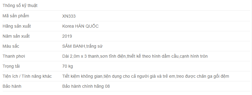 Dưới đây là thông số kĩ thuật của loại giàn phơi này: