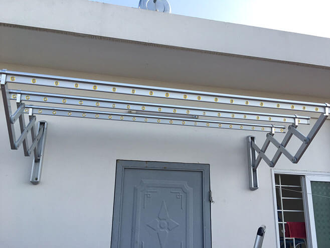 - An toàn và nhanh chóng: Có thể lắp ở tường nhà, khu vực mái che. Tránh bị ướt đồ khi trời mưa không kịp rút