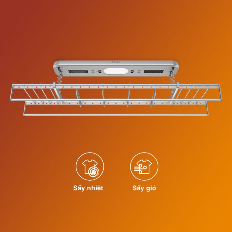 Giàn phơi thông minh SDR702 sở hữu hai tính năng sấy. Điều đó giúp người dùng có thể dễ dàng làm khô quần áo trong mọi điều kiện thời tiết: