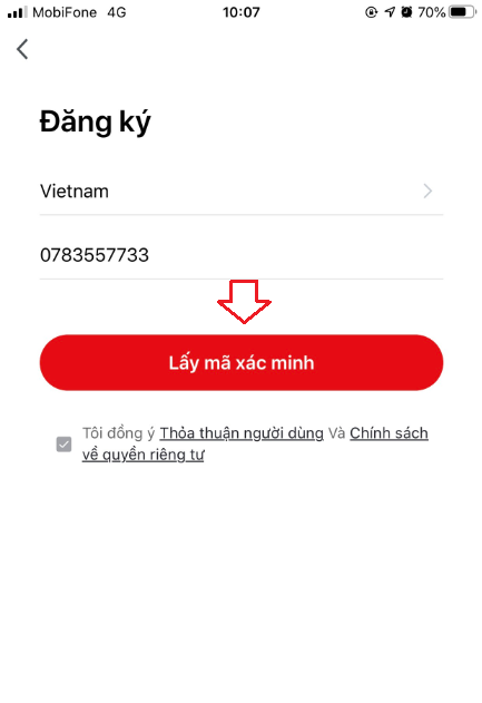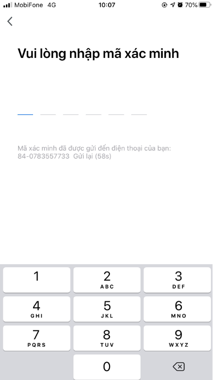 - Nhập mã xác nhận vừa gửi về tin nhắn số điện thoại đăng ký ở trên.