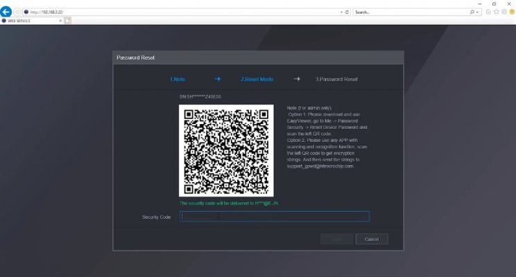 - Bước 3: Mở phần mềm KBVIEW trên điện thoại, vào mục Trang chủ – nhiều hơn – đặt lại mật khẩu thiết bị. Sau đó quét mã QR Code trên màn hình đến khi báo thành công. Sau khi nhận được Email có chứa mã bảo mật (Security Code), hãy nhập mã bảo mật đó lên ô Security Code trên màn hình rồi bấm Tiếp theo để đặt lại mật khẩu mới cho đầu ghi.