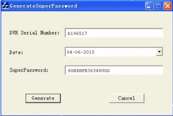 Bước 4: Chạy tập tin Gen SuperPassword.exe sẽ xuất hiện giao diện như sau: Điền thông tin Seri Number và ngày hiện tại cần khôi phục mật khẩu vào khung.
