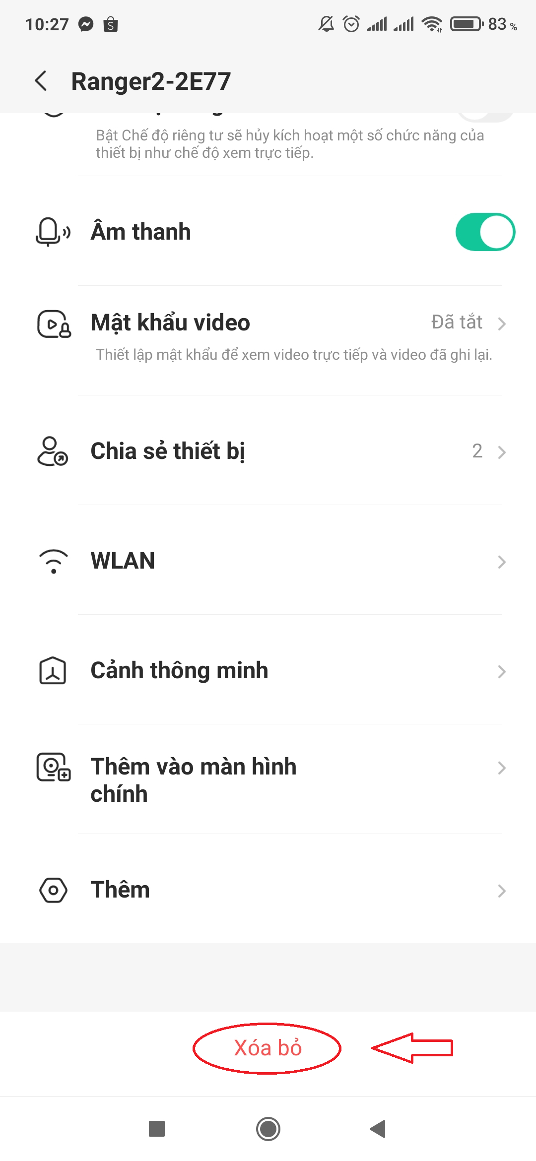 Bước 2: Sau đó bạn kéo xuống cuối giao diện có chữ "Xóa" bạn chọn bấm vào sau đó ban sẽ nhìn thấy dòng thông báo thiết bị được xóa thành công