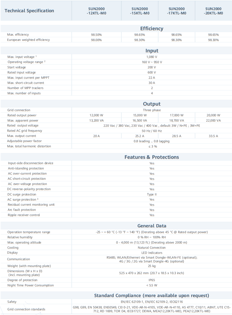 Thông số kỹ thuật Inverter Huawei SUN2000-12KTL-M0