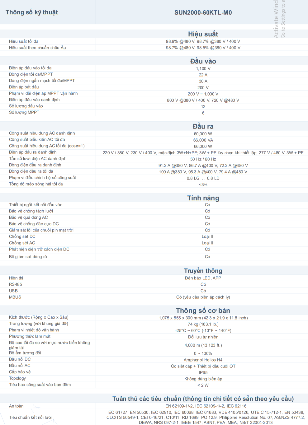 Thông số kỹ thuật Inverter Huawei SUN2000-60KTL-M0