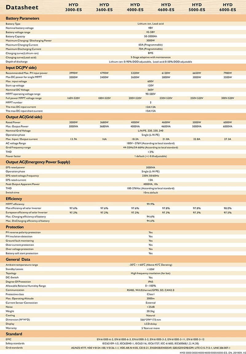 Thông số kỹ thuật Inverter Hybrid Sofar 3kW HYD 3000-ES