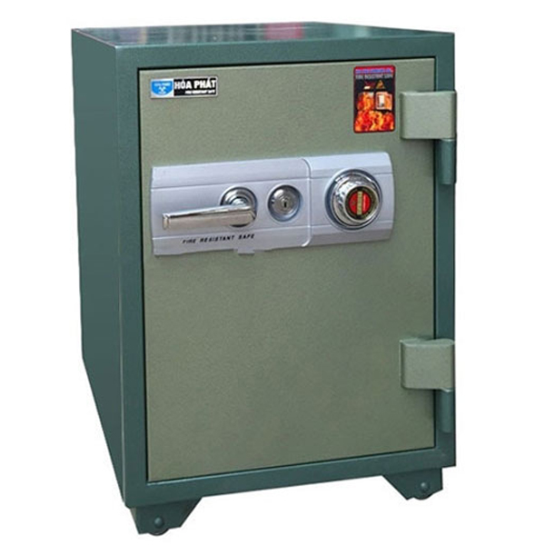 Két sắt Hòa Phát KS135K1C1 thuộc dòng sản phẩm két sắt chống cháy, loại đứng gồm 01 khoá chìa, 01 khóa mã cơ, tay nắm và mặt nạ nhựa