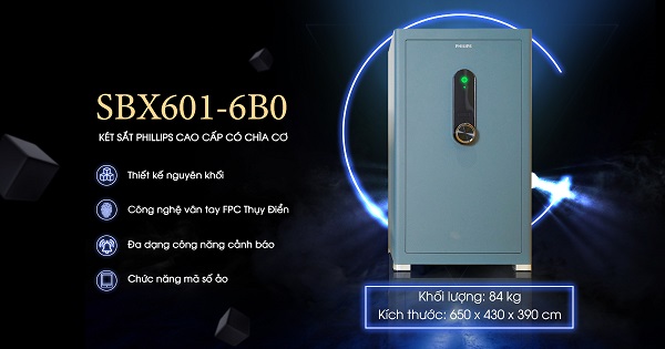 Két sắt điện tử Philips SBX601-6B0 là mẫu két sắt thông minh mở khóa hoàn toàn bằng các phương thức điện tử. Không cần dùng tới chìa cơ, SBX601 sử dụng các nghệ mở khóa hiện đại: vân tay và mã số.