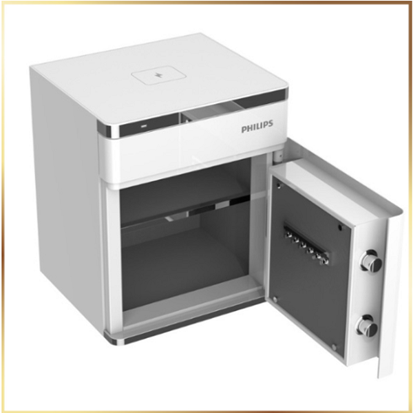 Dành cho những ai ưa thích những thiết bị tích hợp nhiều tính năng công nghệ hiện đại thì nhất định không nên bỏ qua dòng két sắt thông minh Philips SBX301. So với các dòng két sắt thông minh khác, Két sắt Philips SBX301 trang bị thêm tính năng kết nối sạc không dây ngay trên bề mặt két sắt.