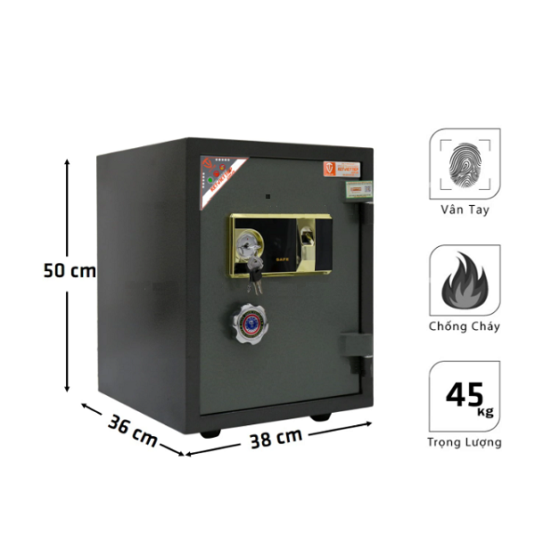 Két sắt sử dụng 1 khóa chìa kết hợp với khóa vân tay thông minh để mở két đảm bảo tính bảo mật cao