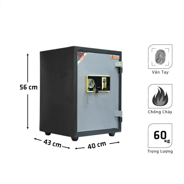 Khóa két: Sử dụng 2 chế độ: Vừa dùng được bằng vân tay hoặc dùng bằng cơ đơn thuần bằng cách sử dụng chìa khóa giải cứu kết hợp với chìa khóa chính để mở két sắt ra.