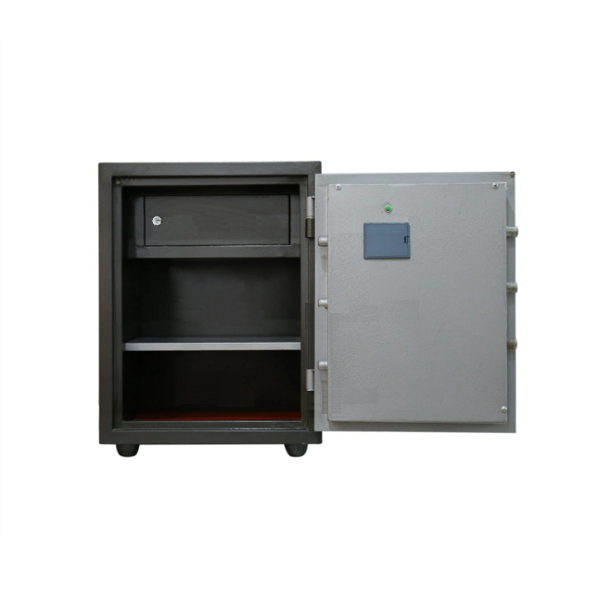Bên trong lòng két sắt ở phía trên có 1 ngăn kéo con có khóa riêng biệt, phía dưới có 1 khay di động có thể nâng hạ được hoặc tháo rời tùy theo ý muốn của mình.