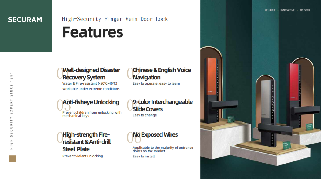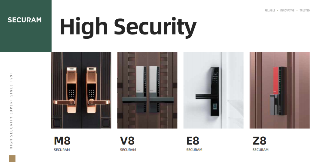 - Mở khóa bằng : Vân tay - Mật mã - Thẻ từ - Remote từ xa - Chìa cơ dự phòng.