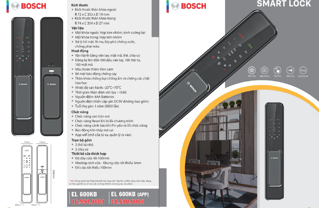 Thông số kỹ thuật khóa cửa vân tay Bosch EL 600