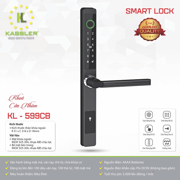 Chức năng Khóa cửa vân tay Kassler KL-599 CB