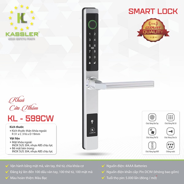 Thông số kỹ thuật Khóa cửa vân tay Kassler KL -599CW