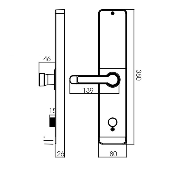 Kích thước thân khóa ngoài: R 80 x C 380 x D 26 mm