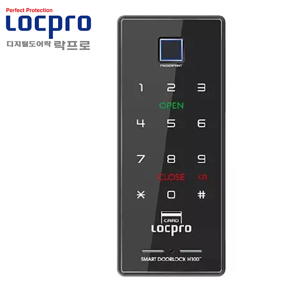 - Khoá cửa vân tay Locpro H100F với thiết kế không tay cầm. Thân ngoài lắp đứng, thân trong lắp ngang. Thường lắp thêm cho cửa đã có tay nắm hoặc khóa cơ