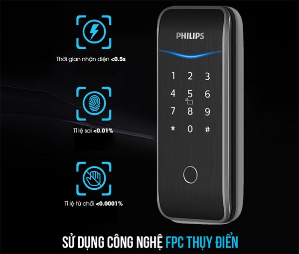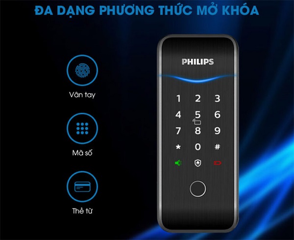 Philips 5100-5H sử dụng các phương thức bảo mật tiên tiến như: vân tay, mã số, thẻ từ.