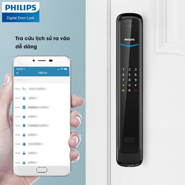 Khóa Philips DDL 702-1HW có thể quản lý trên điện thoại giúp bạn quản lý lịch sử vào ra của khoá rất tiện lợi. Khoá đã được nâng cấp tích hợp wifi, việc quản lý không còn nằm tại nhà mà có thể cách xa mọi nơi.