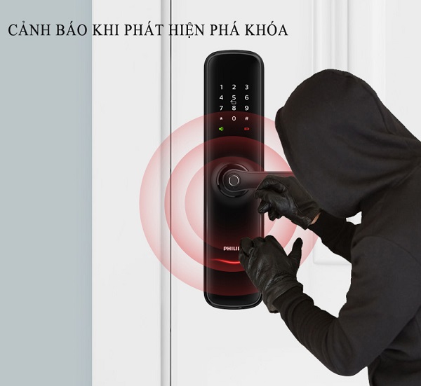 - Cảnh báo phá hoại: Khi có kẻ xấu cố tình phá hoại cửa, chức năng cảnh báo bằng âm thanh sẽ tự động bật lên.