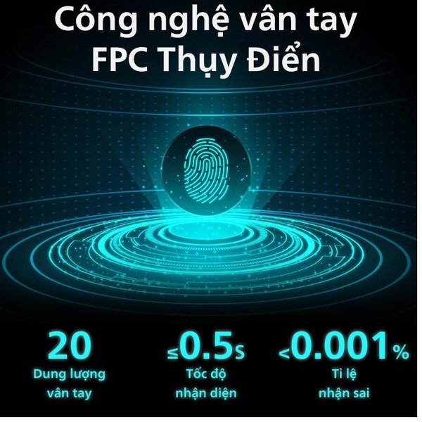 Vân tay: Công nghệ cảm biến FPC Thuỵ Điển với khả năng nhận diện chỉ 0,5s, an toàn hàng đầu hiện nay.