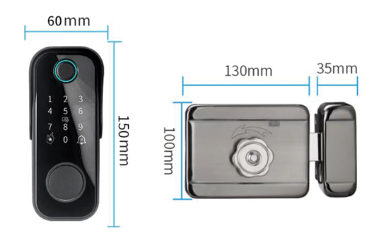 4. Kích thước khóa cổng vân tay Capsule GA100.