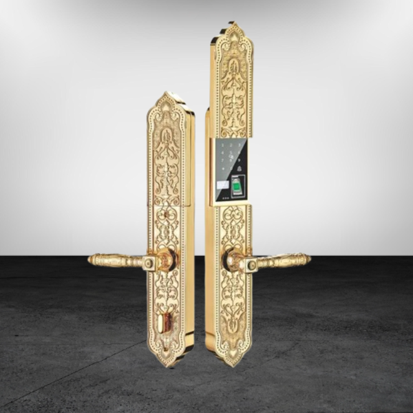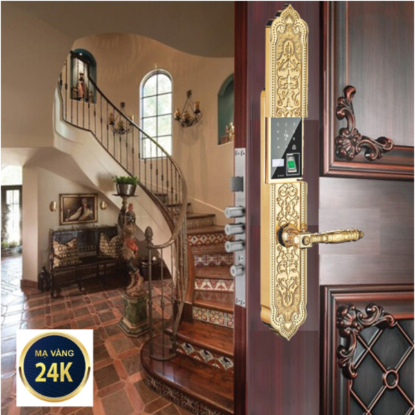 + Mặt khóa ngoài: Hợp Kim, Mạ Vàng 24K (chống xuống màu theo thời gian)