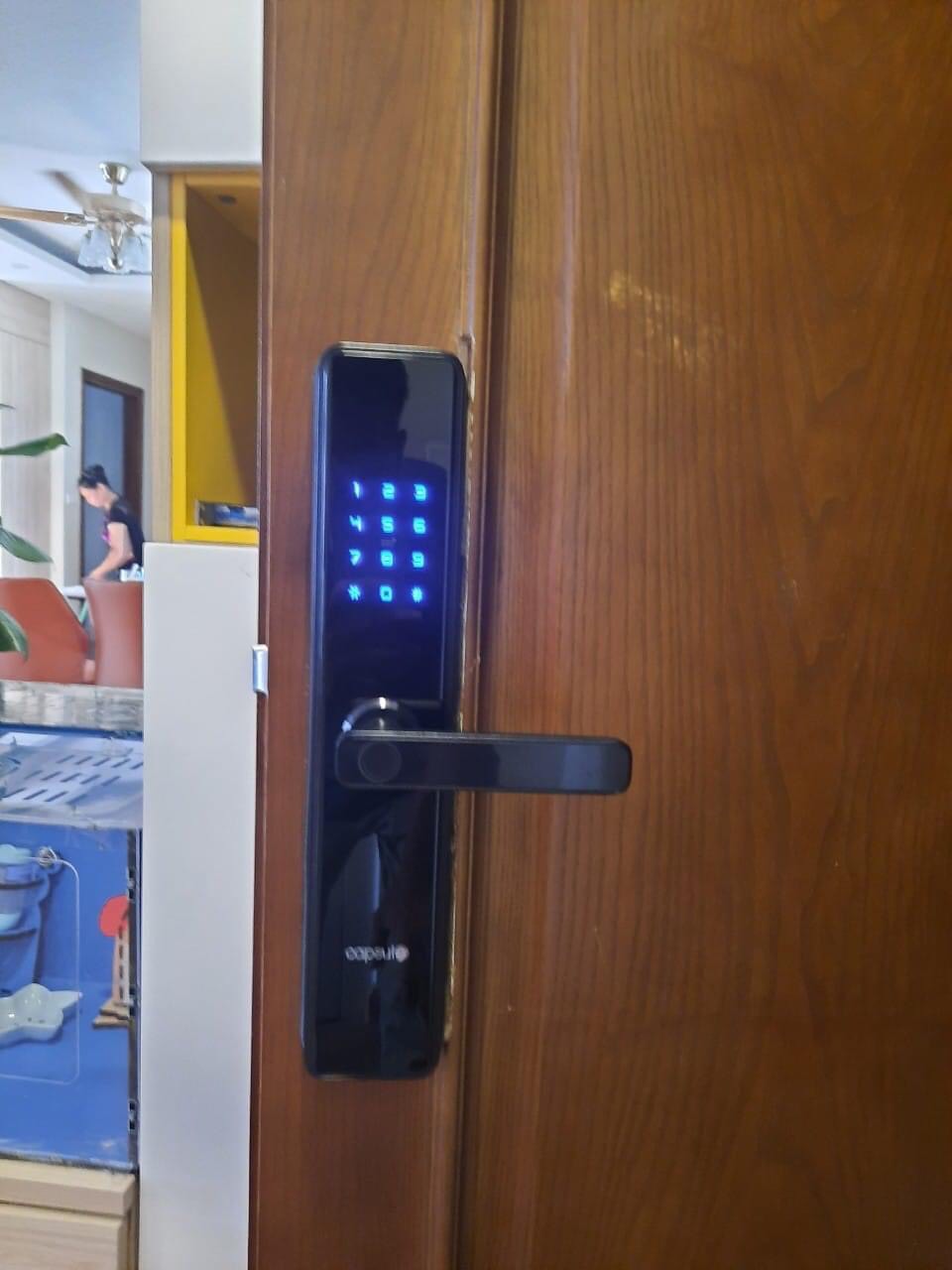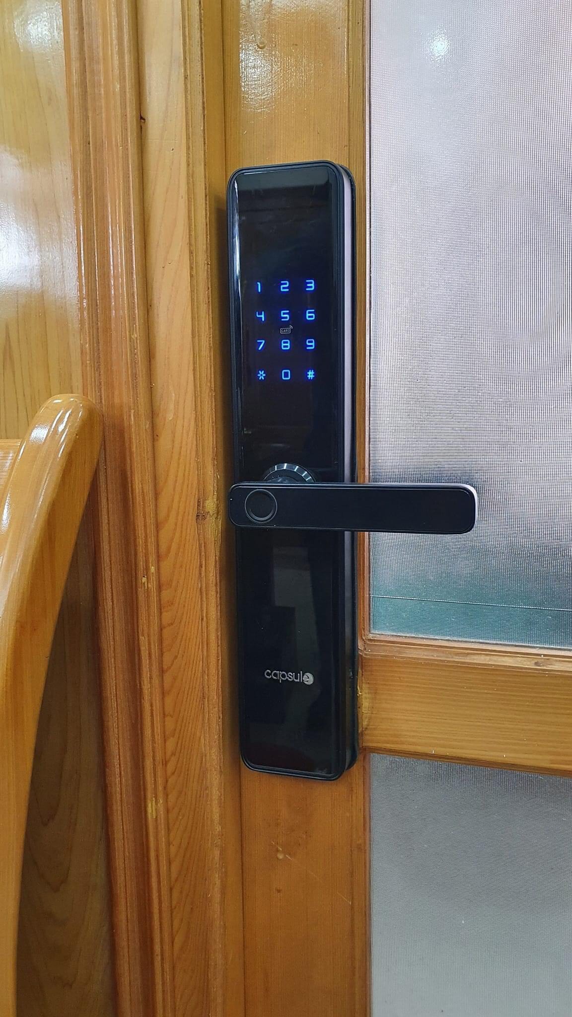 2. Các tính năng của Capsule M1 ϟ Sử dụng Mã quản lý Master ϟ Kết nối với Điện thoại thông minh, có thể cài đặt mã số mở cửa từ xa theo ngày giờ mong muốn ϟ Mở cửa bằng VÂN TAY nhanh chóng, chính xác, sử dụng công nghệ vân tay điện dung hiện dại có độ nhạy cao ϟ Mở cửa bằng MÃ SỐ với cơ chế mã số giả an toàn, không để lại dấu tay ϟ Mở cửa bằng THẺ TỪ cảm ứng, được mã hóa thông minh, chống sao chép thẻ ϟ Tự động chốt khóa sau khi cửa đóng, chốt 2 cấp an toàn ϟ Phím số cảm ứng, màn kính chống xước cả mặt khóa ϟ Có độ bền và độ an toàn cao ϟ Có chuông báo động xâm nhập ϟ Mạ cách điện an toàn có khả năng chống sốc tĩnh điện3. Yêu cầu về cửa để lắp đặt khóa cửa Capsule M1 1. Yêu cầu về cửa: Các yêu cầu kỹ thuật bao gồm: - Cửa có độ dày tối thiểu là 3.5 cm - Cửa có đố cửa rộng tối thiểu là 9 cm - Cửa phải được thiết kế kín, không cho tay được vào trong 4. Hình thực tế lắp đặt khóa thông minh Capsule M1