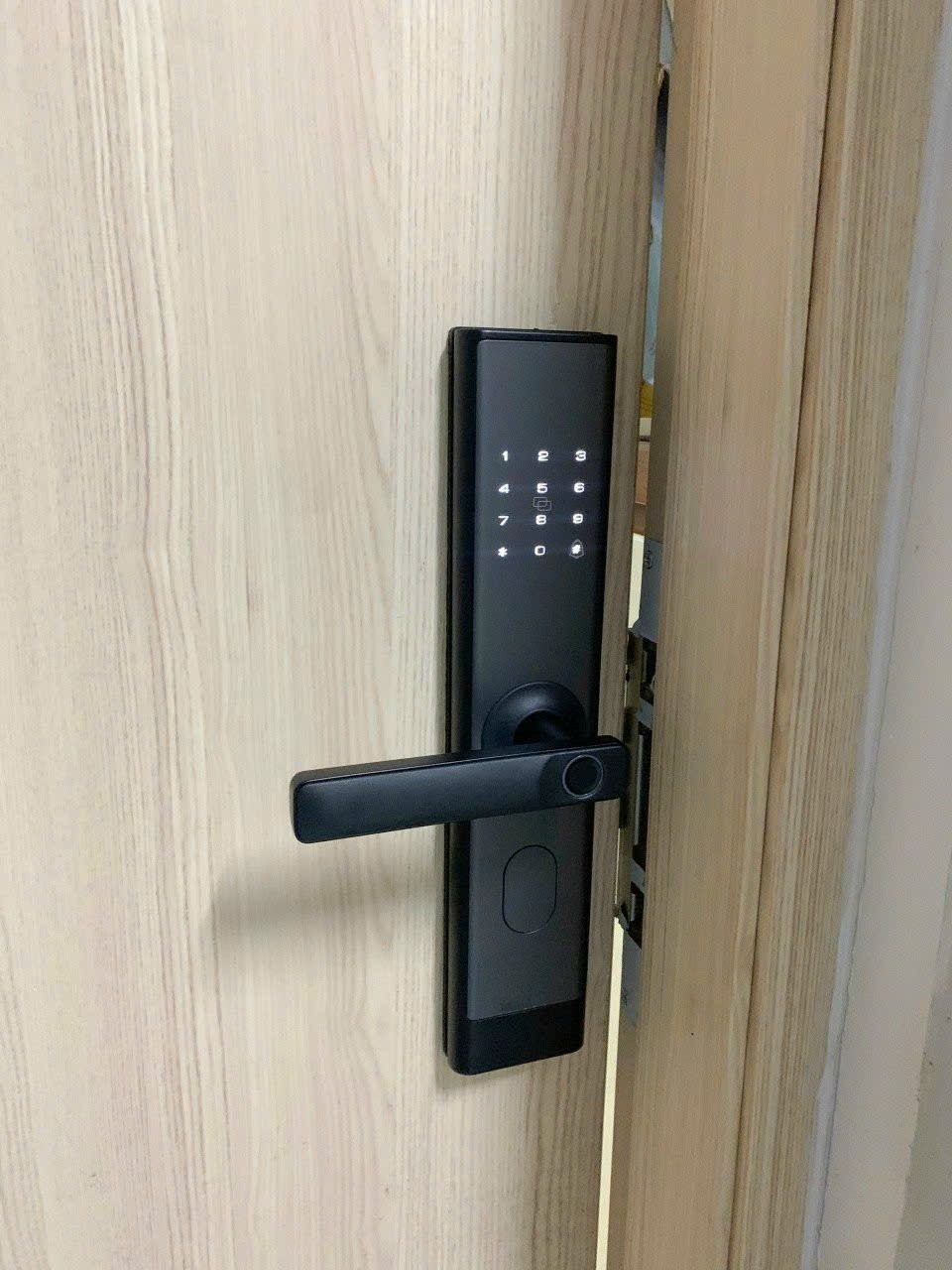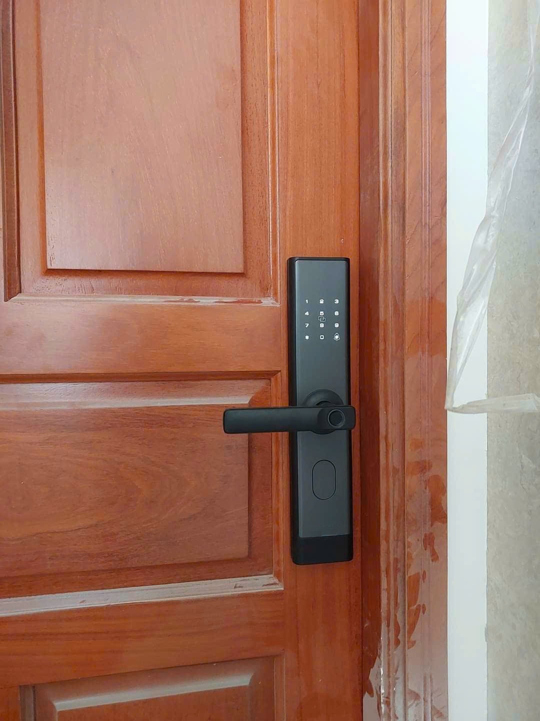 4. Hình thực tế khóa điện tử Capsule X9 lắp đặt trên cửa.
