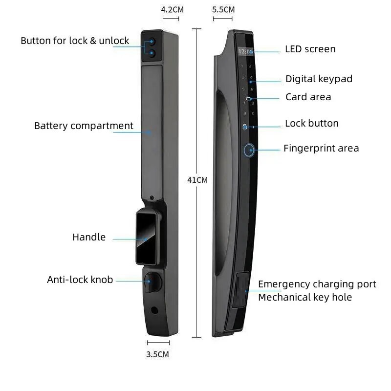 – Vân tay cảm biến công nghệ FPC của Đức chống làm giả, thiết kế 360 có thể mở từ mọi hướng, độ nhạy: 2ms