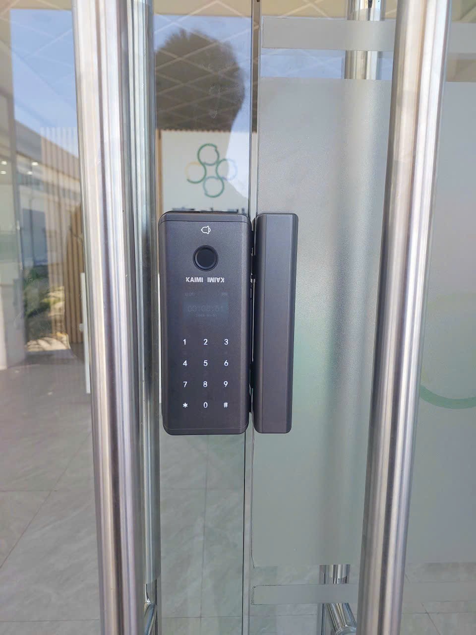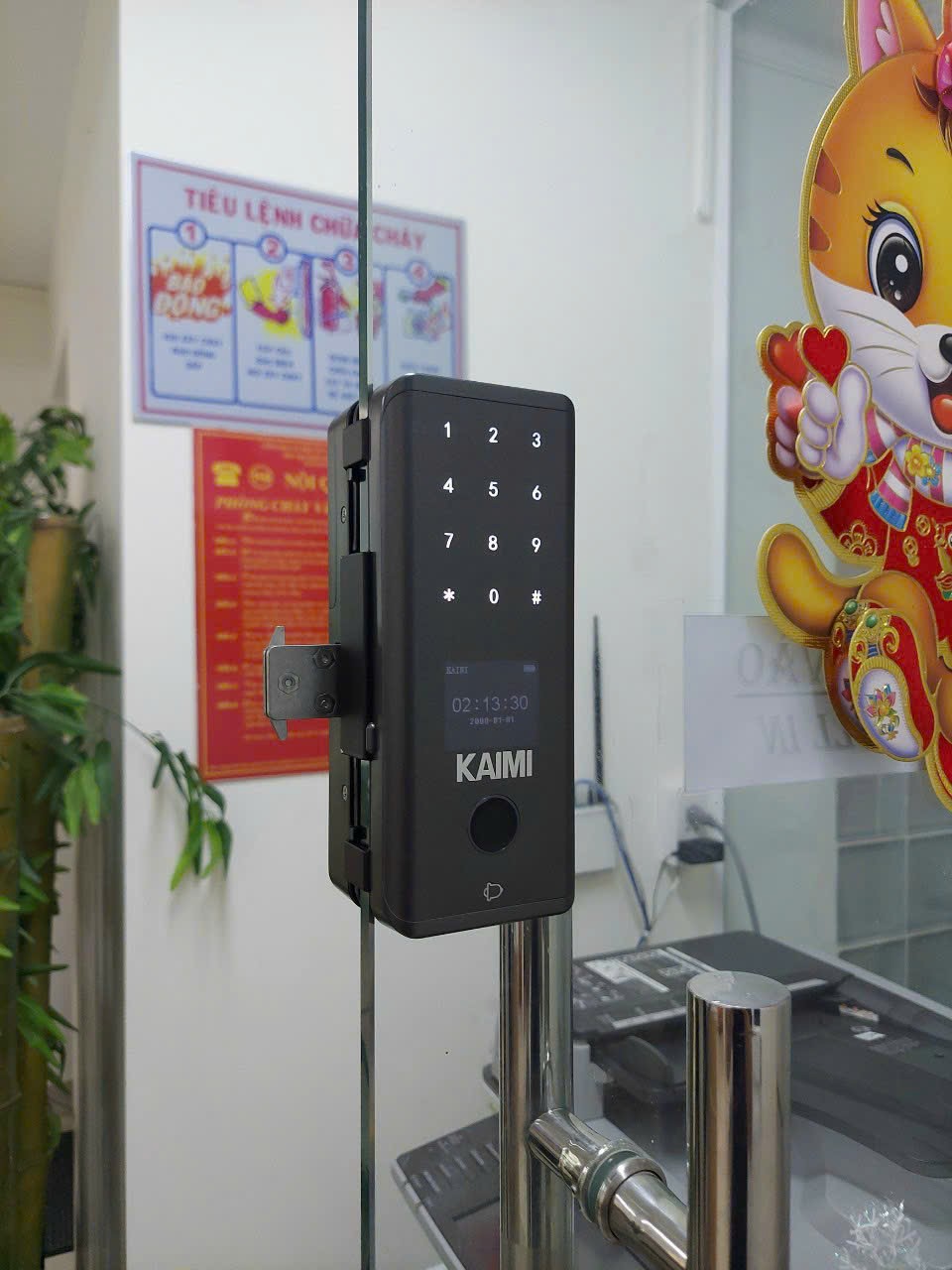 Hình Ảnh Lắp Đặt Khóa Vân Tay Cửa Kính Kaimi CK103